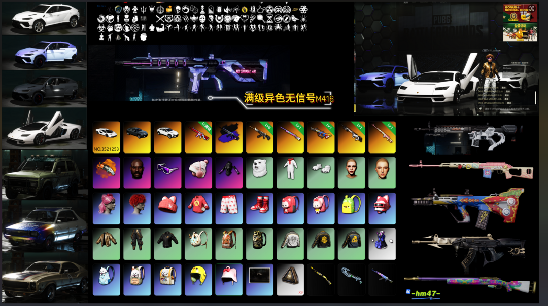 【7神器】满兰博基尼✨满级异色无信号M416✨八级恶魔ACE✨美杜莎M762✨彩虹M24✨爆裂AUG