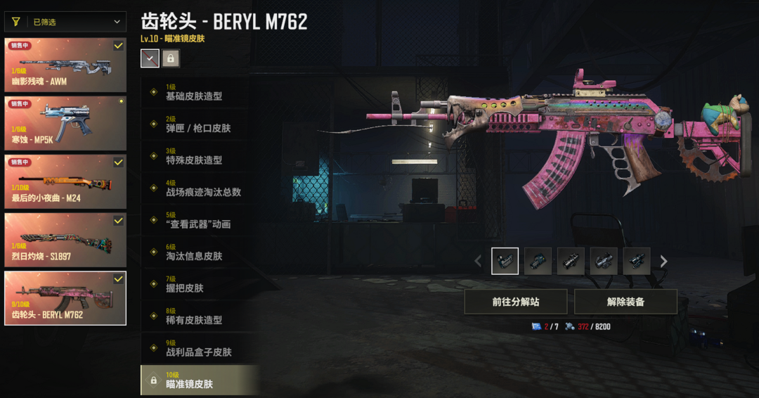 ⑨级火麒麟M762✅夜曲M24✅寒蚀MP5K✅烈日喷子✅幽影AWM✅白战神粉柏林战神悲喜✅烟枪烟弹