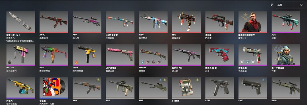 完美C+✅骷髅匕首✅血腥运动AK47✅二号玩家M4A1✅反冲精英M4A4✅迷人眼AWP✅花脸