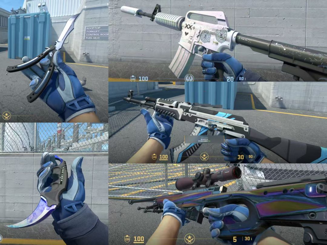 仅可5e❤蓝宝石多普勒爪子刀+蓝钢蝴蝶刀❤双栖手套❤火神ak❤印花集a1❤镀铬大炮