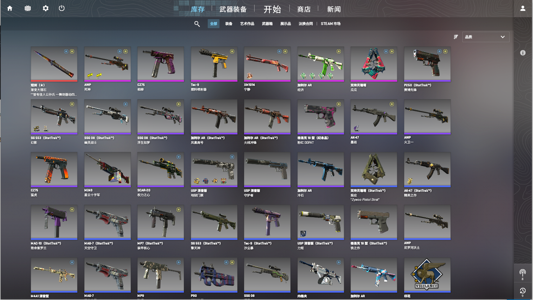 装备描述:完美老兵丶崭新渐变大理石三重色短剑丶awp死神丶ak47墨言丶m4气泡流行丶主战齐全音.乐盒