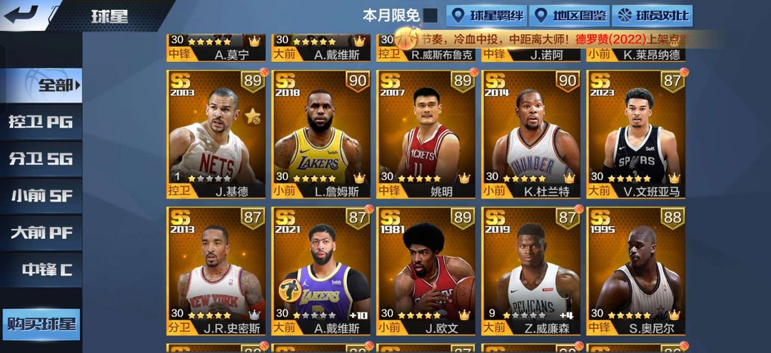 游戏区服:最强NBA-QQ安卓-手Q12区-快船队